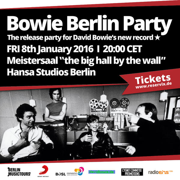 Daar wordt namelijk, net als over de hele wereld, zijn verjaardag en releaseparty van ★ (Blackstar) georganiseerd. Echter, in Berlijn vindt het plaats in de oude Hansa Ton studio. “The hall by the wall”, zoals Bowie ‘m noemde. Daar waar hij Low, Heroes en Lodger opnam. Heilige grond dus!