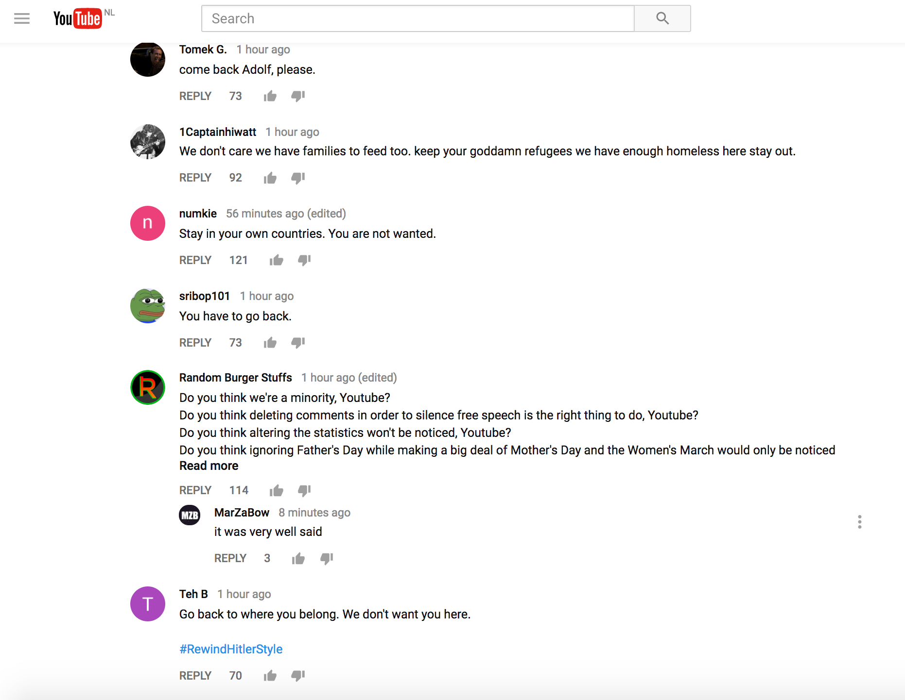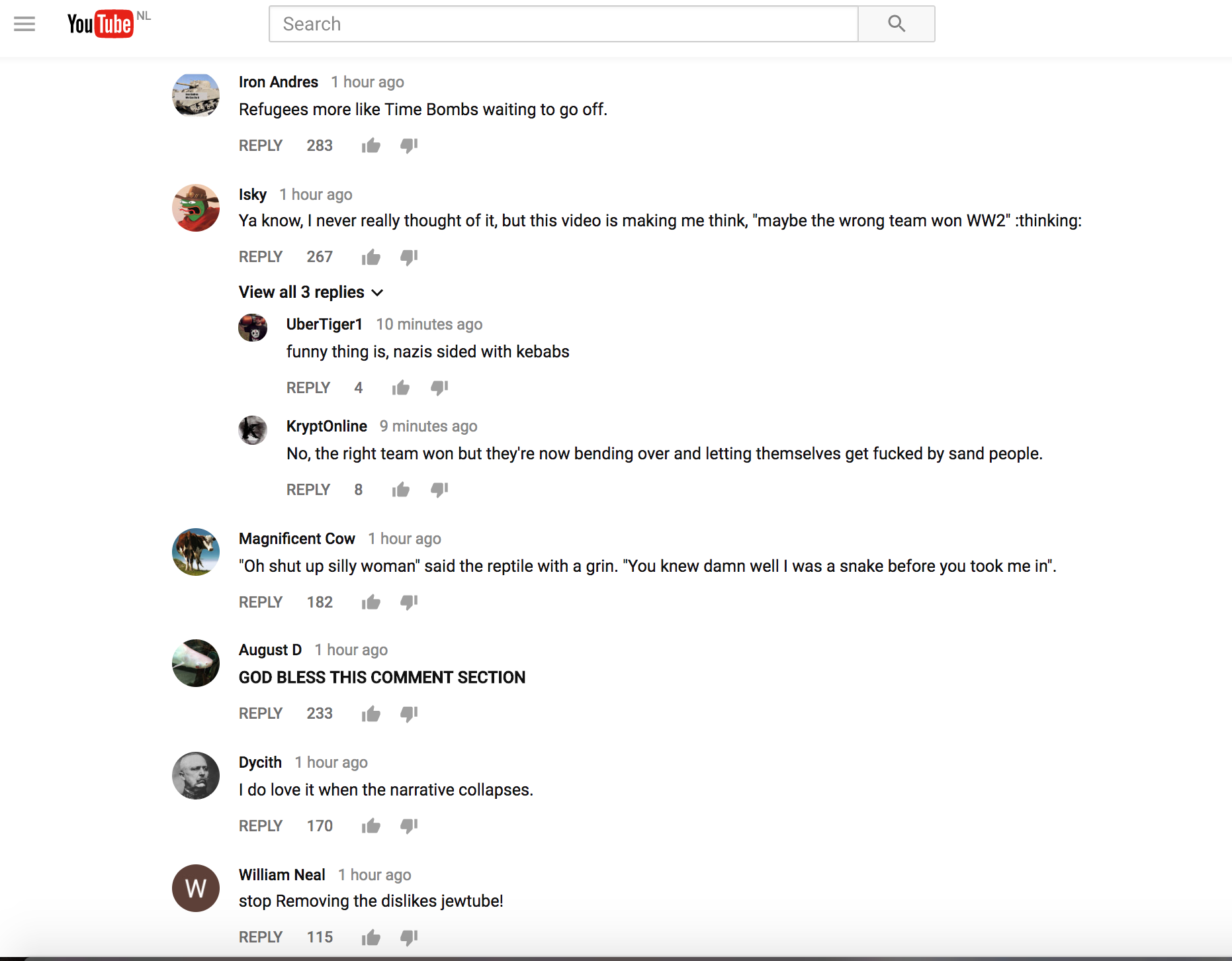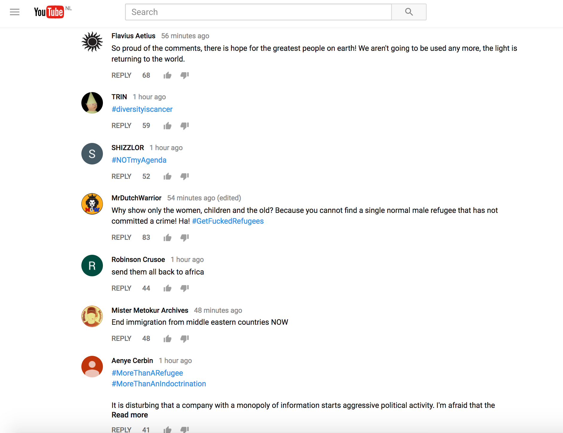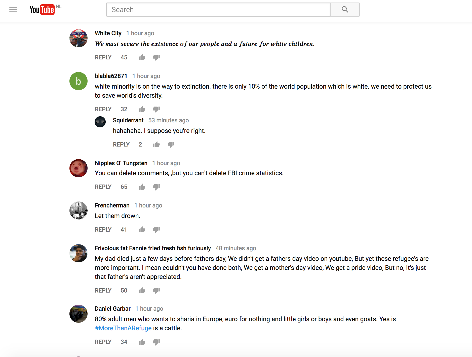 De comment section eronder is gevuld met extreem-rechtse teksten en de meest grove verwensingen.