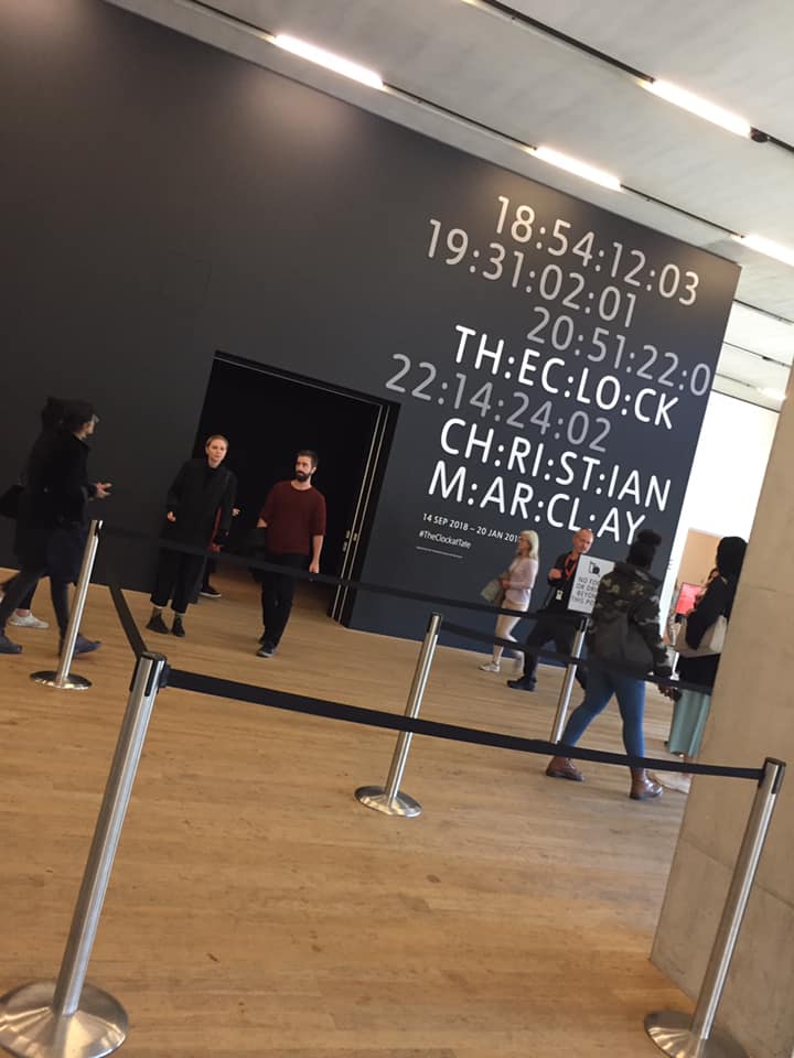 Ik begon de (zonnige) dag met fikse wandeling naar Tate Modern om daar te genieten van een stevig English Breakfast. Er stond geen rij bij The Clock en ik kon gelijk in een van de 50 IKEA driezitsbanken ploffen. Drie uur lang heb ik gefascineerd gekeken naar de filmscènes die vloeiend in elkaar overliepen en elke minuut keurig in beeld brachten. En ook al wordt er geen verhaal verteld, ik bleef geboeid kijken naar het grote scherm.